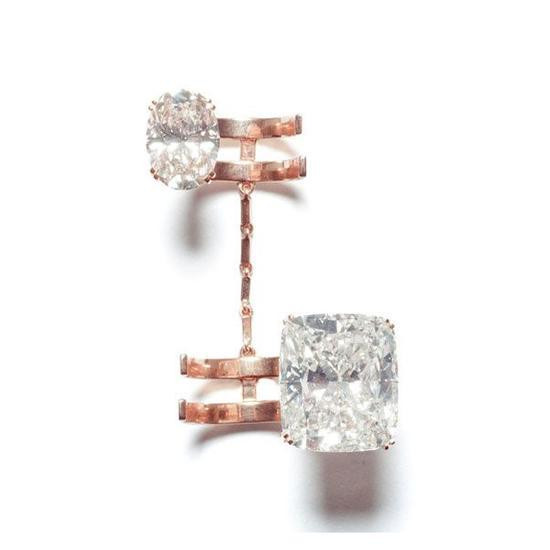 Gaia的珠宝设计对称性明确,廓形信息强烈,给人予精炼脆弱又不乏犀利的简约美感。她说,“我的设计理念与洛可可、巴洛克背道而驰,复杂的装饰不对我的胃口,让我有一种信息过量的窒息感。”