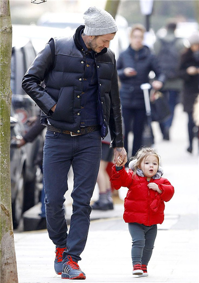 贝克汉姆正是蓬松毛帽的爱用者,日常出街都常以一顶蓬松型毛帽作为整体造型重点。贝克汉姆的习惯戴法:将毛帽完全覆盖耳朵和刘海,凸显脸部五官。这种戴法的另外一个好处就是几乎不用整理头发,适合轻装出门及旅行场合。不过,这种戴法会使视觉焦点完全集中在脸部,五官不够深邃的人戴起来有点危险,至少得有个好看的须型,或者搭配有型的眼镜,让脸部有造型重点,时尚感随即提升。