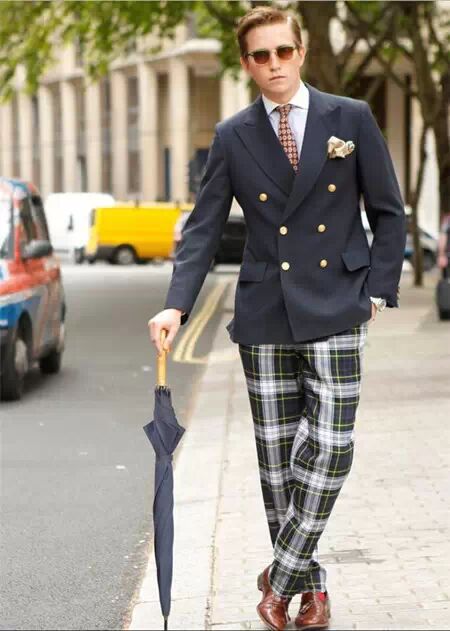 像成套西装这样的服装,不用你花多大的心思去研究怎么搭配(因为它是一整套搭配好的),但是想要穿的出彩,那么要考研的就是你的选配色功底了。比如说,你会想到绿色格子西装里面系一条蓝色碎花领带,也是这番毫无违和感的效果吗。